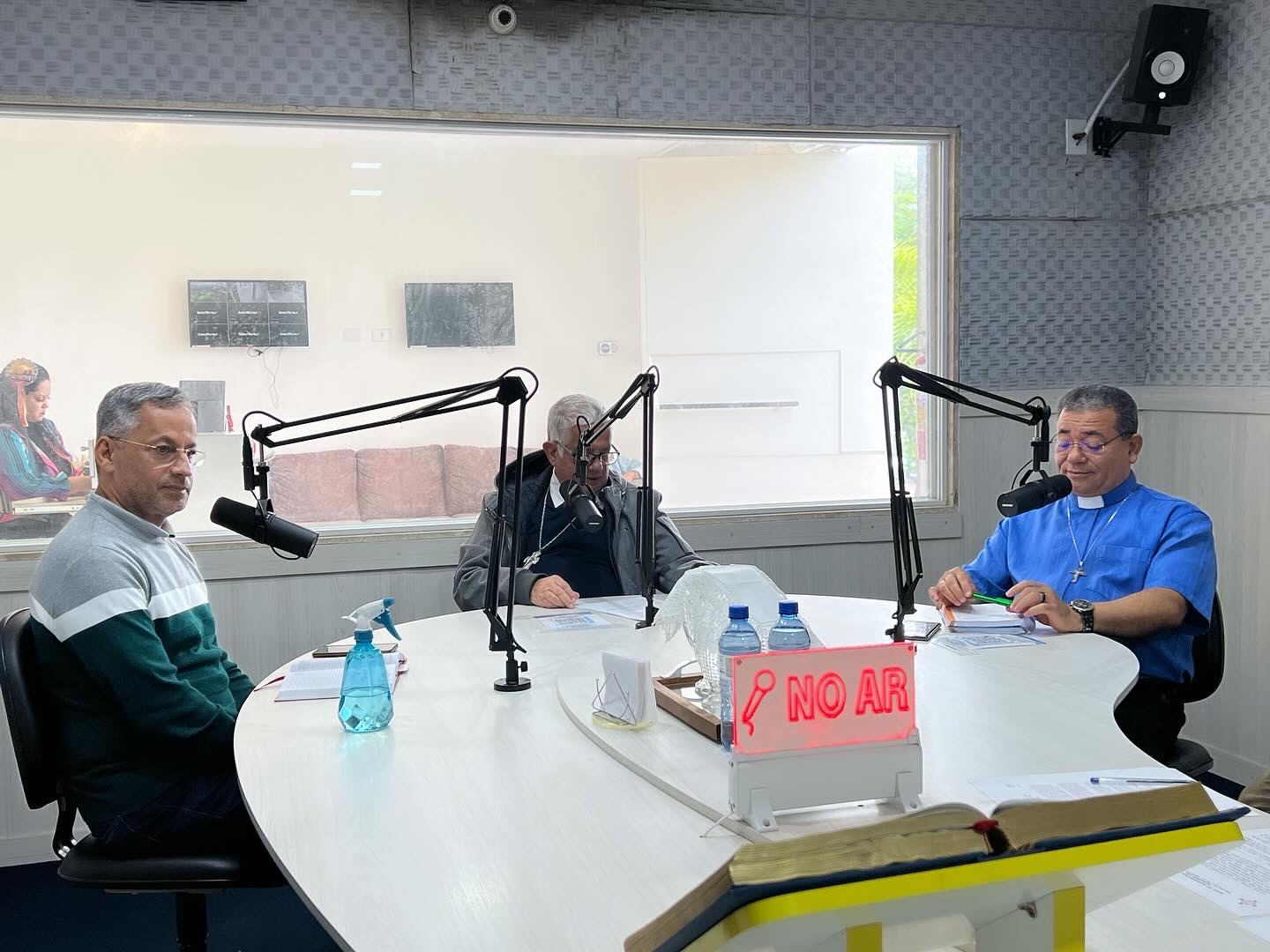 Na manhã deste sábado, acolhemos em nosso estúdio a nova direção do Colégio Diocesano Cardeal Arcoverde o qual, anteriormente, há mais de 40 anos, era dirigido pelo então Padre Adilson Simões, fundador e presidente da nossa emissora, a Rádio Agnus Dei.
